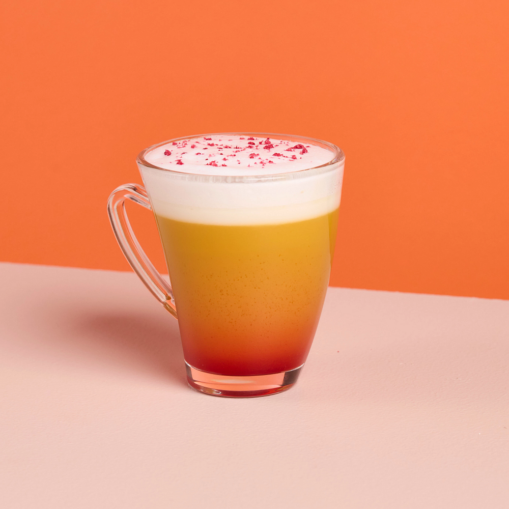 Comforting and café-style, this steamy sip layers Big Train Vivaz Flan Blended Crème with hot water or milk, a ribbon of DaVinci Gourmet Cherry Syrup, and a soft cap of frothed milk—like a cherry-topped flan in a mug. Finish with dried cherry powder for a rosy aroma.