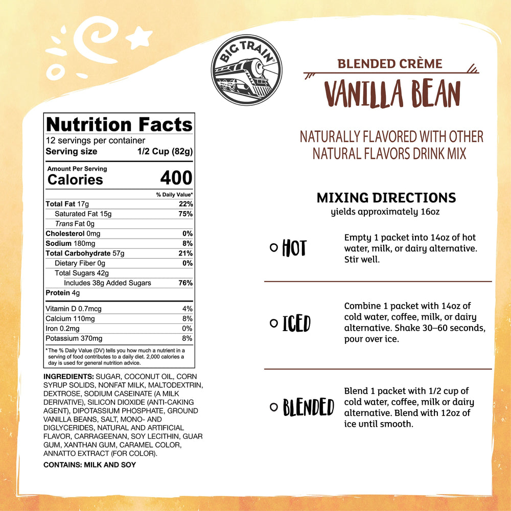 Big Train Vanilla Bean Blended Creme Beverage Mix Sachets - 12 x 2.9 oz
